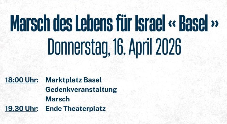 Am 16. April 2026 um 18 Uhr findet der Marsch des Lebens für Israel in Basel statt. Dazu möchten wir Sie ganz herzlich einladen!