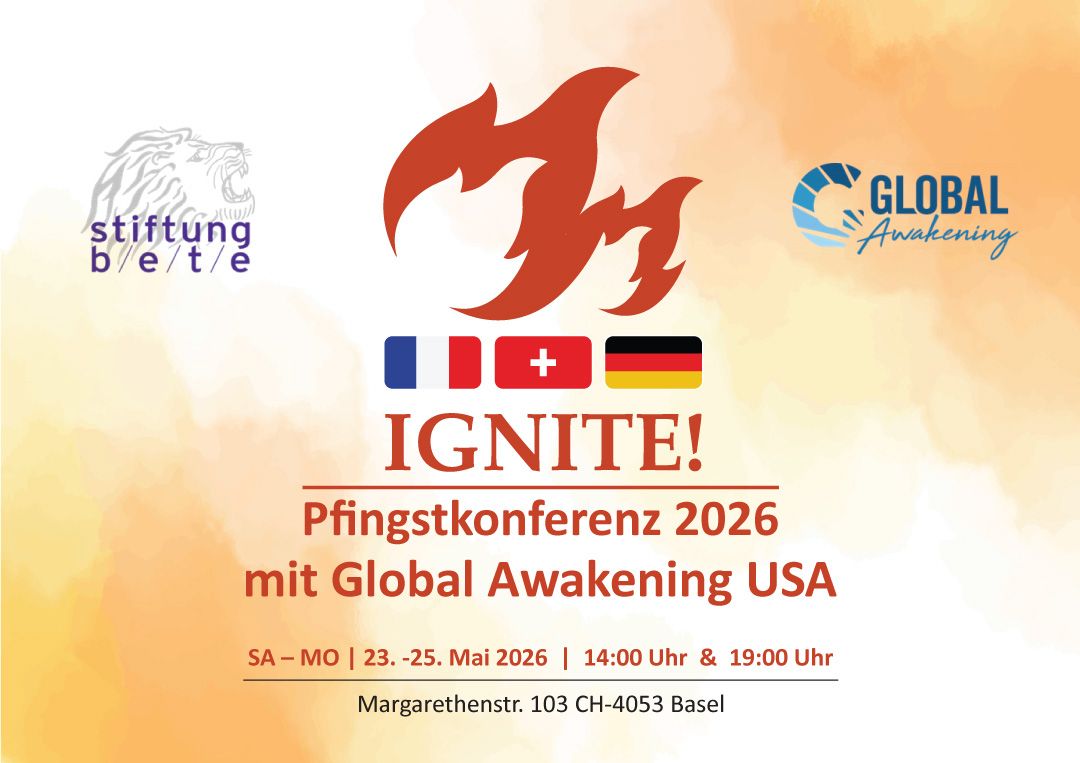 Im Mai (23.-25. Mai 26) veranstalten wir die Pfingstkonferenz IGNITE! mit Dr. Charity Cook und Valora Bock & Team von Global Awakening, USA (Randy Clark Ministries).