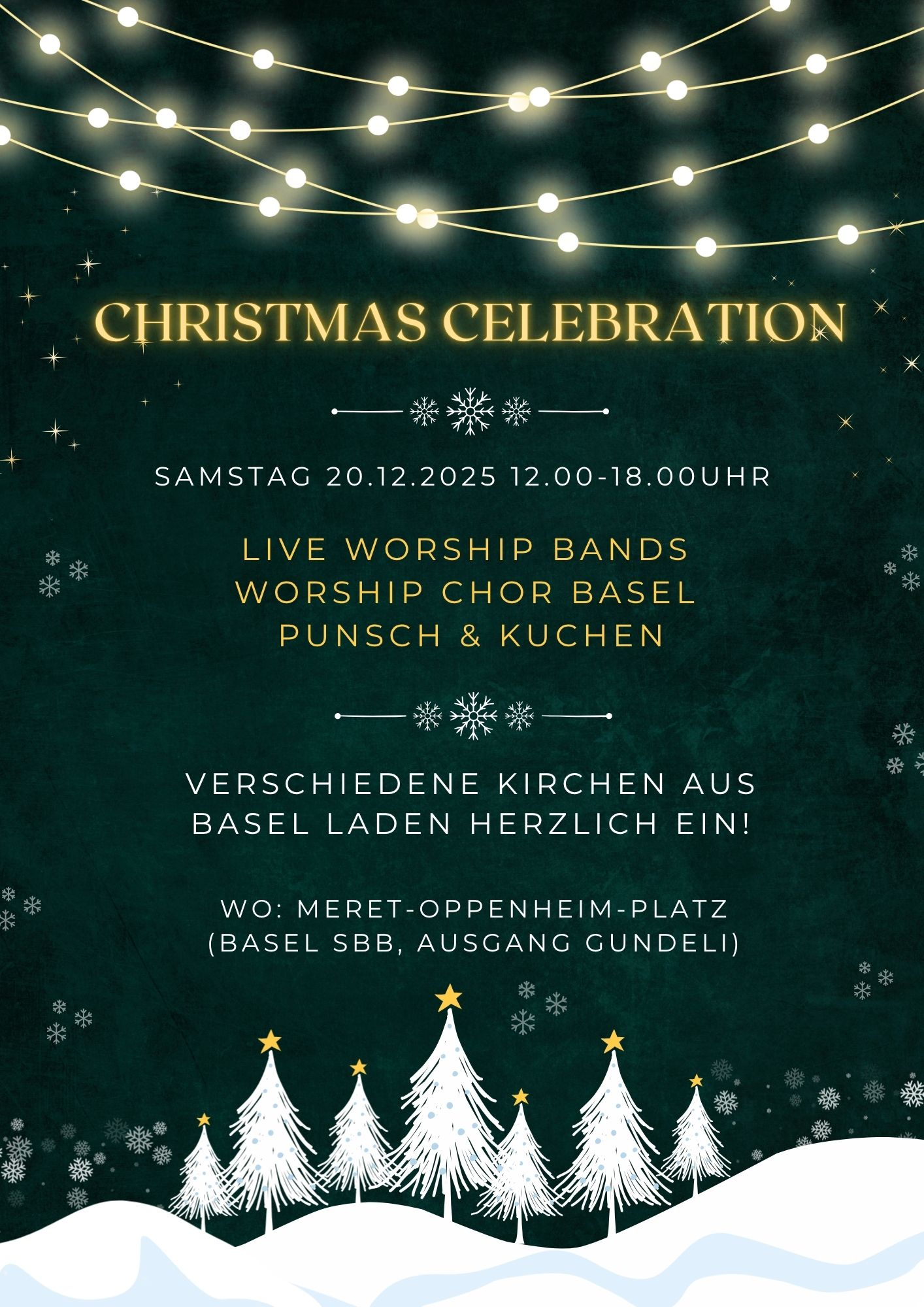 Weihnachtseinsatz auf dem Meret Oppenheim Platz. Sei dabei, mach mit! Wir suchen noch worship bands und helfende Hände beim Auf-/ Abbau, beim Kuchenbuffet, der Schriftenverteilung und für Gespräche mit Passanten. Es wird ein fröhliches Fest für die Stadt, wo Jesus verherrlicht und die Botschaft von Weihnachten verkündet wird.